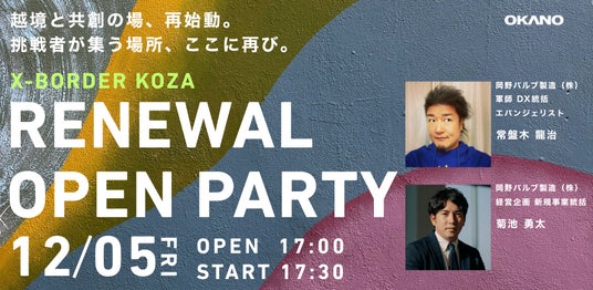 岡野バルブ製造株式会社(本社:福岡県北九州市、代表取締役社長 岡野武治、以下「当社」)は、沖縄県沖縄市コザのコミュニティオフィス「X-BORDER KOZA(クロスボーダー・コザ)」をこのたびリニューアルオープンしました。企業の現場が抱える等身大の悩みに寄り添い、共に課題解決に挑む変化(ゲームチェンジ)に立ち向かう企業を支援する「実践型コミュニティ」へと進化いたします。