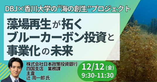 JPI(日本計画研究所)は、株式会社日本政策投資銀行 四国支店 業務課 主査 辻 周一郎 氏を招聘し、藻場再生が拓くブルーカーボン投資と事業化の未来について詳説いただくセミナーを開催します。