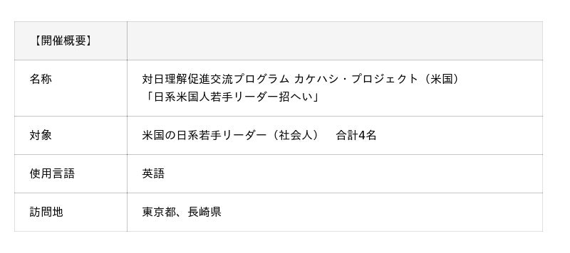 【対日理解促進交流プログラム「カケハシ・プロジェクト」事業概要】