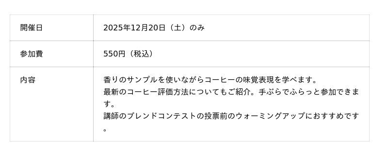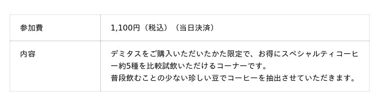 ■ワンコイン!コーヒーテイストセミナー(20分)