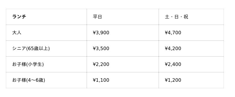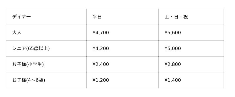 ※料金には消費税及びサービス料が含まれております。