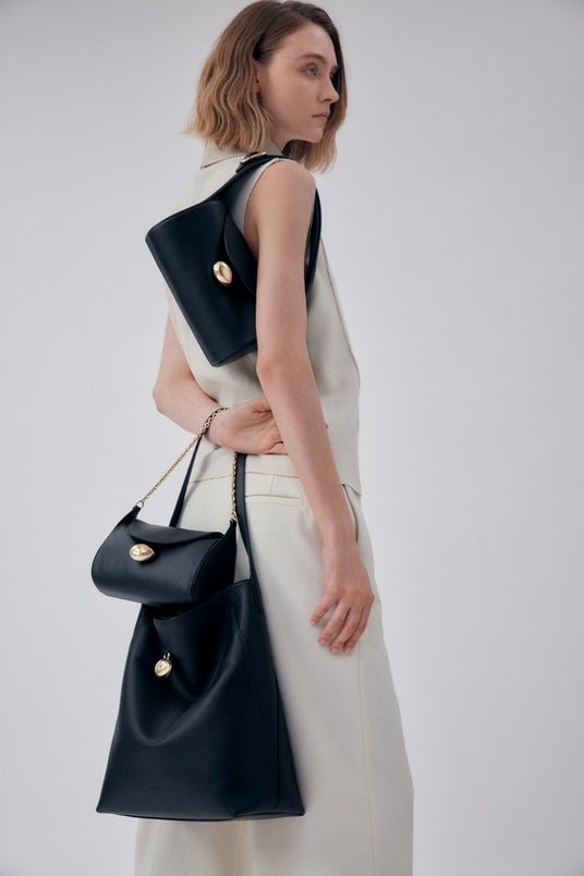 「Soft Fold Bag」 Black/Oatボリュームのある折り目が特徴的なシルエットを生み出し、カジュアルでありながら洗練された柔らかさを持つデザインが特徴。柔らかなギャザーとテンションだけで形づくられた独特のフォルム。バターのように柔らかく光沢があるカウナッパレザーの折りたたみが、ユニークで豊かなふくらみを生み出し、自然なドレープを引き立てます。