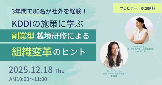 side projectを継続導入し、3年間で約80名を送り出したKDDIのオープンイノベーション担当社がゲスト登壇。「副業型越境研修が組織に与える影響」について深掘りします!