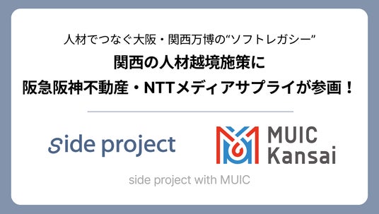 株式会社ローンディール(本社:東京都港区、代表取締役:後藤幸起・大川陽介)は、一般社団法人関西イノベーションセンター(大阪府大阪市、理事長:早乙女 実、以下 MUIC Kansai)と連携し、関西エリアにおける人材流動化施策「side project with MUIC」の参画企業が決定したことをお知らせします。2026年1月より、阪急阪神不動産株式会社、NTTメディアサプライ株式会社の2社が大企業枠として参加します。また関西のスタートアップ企業4社の導入も決定し、大企業人材と の交流・協働が始まります。