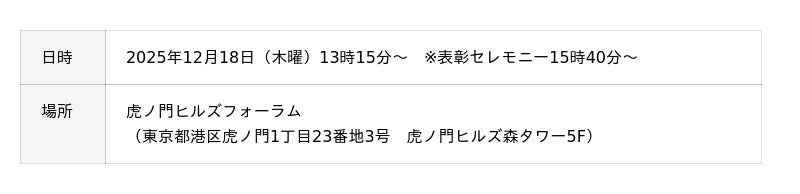 表彰式:12月18日 虎ノ門ヒルズフォーラム