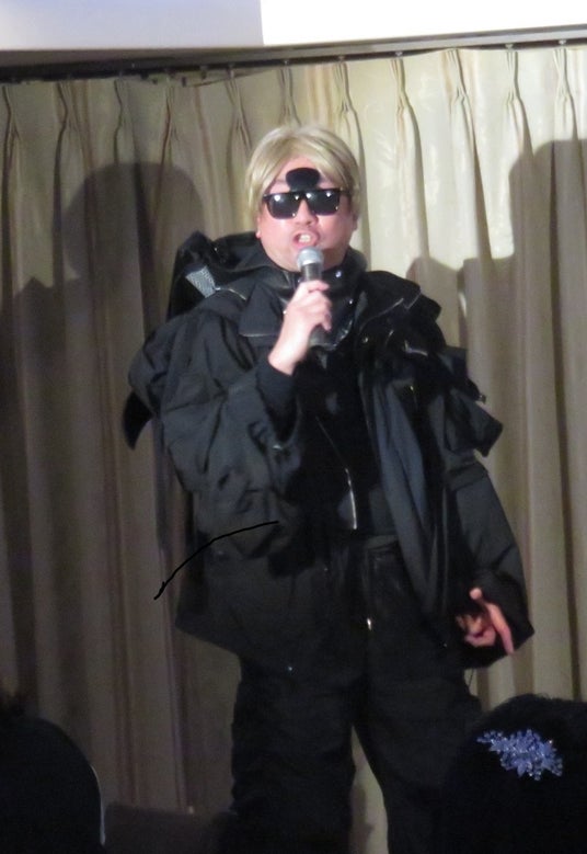 参加者たちはディナークルーズにふさわしくラグジュアリーな装いで乗船。ウェルカムプレゼントの“RGバンダナ”を自身の衣装に合わせてコーディネートし、RGの登場を待ちます。マリーンルージュに欠かせないオープニング曲、サザンオールスターズ『LOVE AFFAIR~秘密のデート』が流れ始めると、姿を現したのは“RG井風”。特徴的なタレ耳とサングラスで察した参加者たちは笑いながら拍手喝采。シャッターを切る手が止まりません。