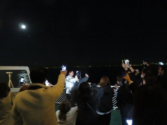ツーショットタイムはリクエストに応えて華麗なる羽生結づぁるで登場し、デッキのKiss and Cryで横浜の美しい夜景や月をバックに撮影。マリーンルージュに施されたイルミネーションも結づぁるのためのKiss and Cryとばかりに参加者たちは至る所でカメラを向けます。