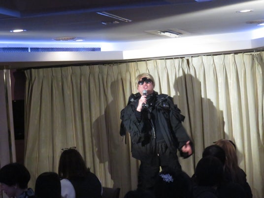 「皆さん楽しんでくださいね。あるあるどんどん歌います」とトークを展開しながら、バンダナをあしらったドレッシーな参加者たちの装いや、男性客も多い会場内にはしゃぐRG。「このあと、デッキでツーショット撮影会を行います」と告知をし、「羽生結づぁる(の衣装)もあるんですけど」と報告したところ、観客から予想以上の歓声が。凝りに凝ったRG井風だけに「えー!なんでー!」と、少しふてくされてみせるRGに参加者たちは爆笑。気を取り直して「羽生あるある歌っておきましょう」と、QUEEN『I Was Born To Love You』を熱唱します。