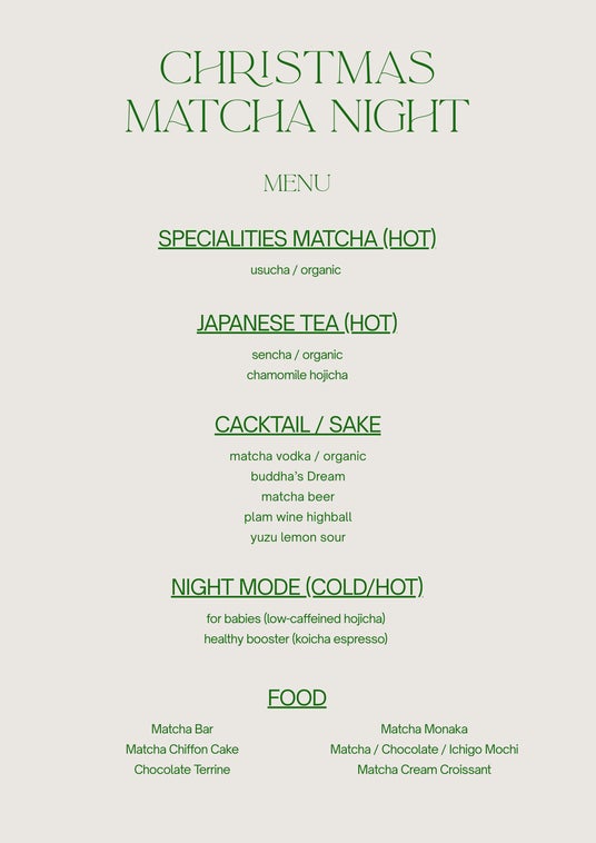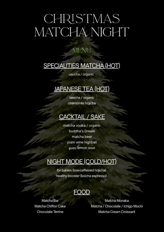 イベント名: CHRISTMAS MATCHA NIGHT - BAR TAKEOVER日程: 2025年12月19日(金)~20日(土)