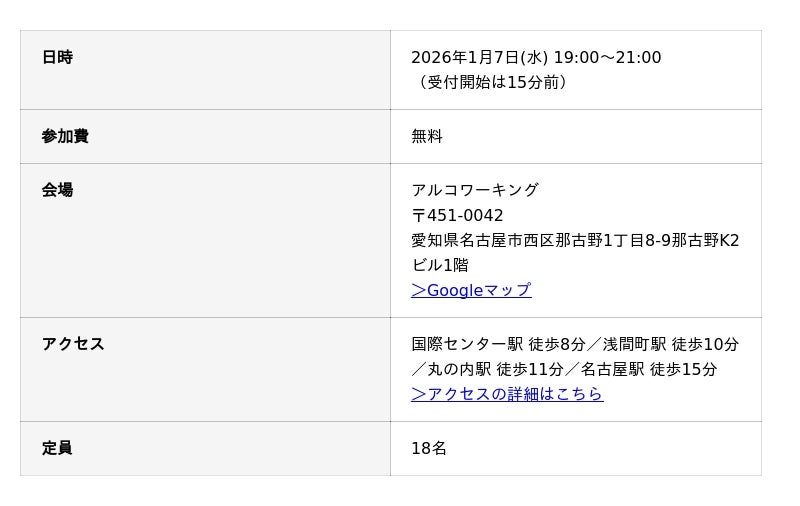 2026年1月7日(水) に、名古屋市のアルコワーキング(運営会社:室屋アフィリエイト合同会社、所在地:愛知県名古屋市西区那古野、代表:室屋清隆)にて、山口珠里氏主催のクチコミで評価を上げるプロ!Googleローカルガイドレベル10が教える「在宅ワーカーのための指名受注術」が開催されます。