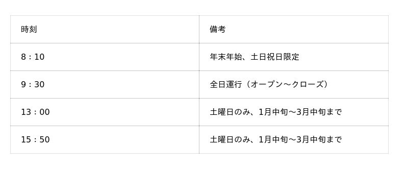 運行日・時刻(公式サイト)