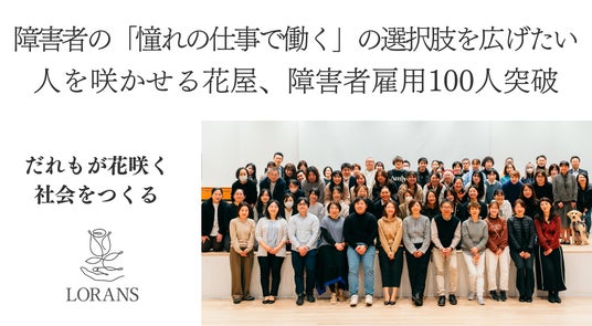 “みんなみんなみんな咲け”のスローガンを掲げ 障害や難病と向き合うスタッフを多数(従業員140名のうち約7割)雇用する花屋、一般社団法人ローランズプラス・株式会社ローランズ(本社:東京都渋谷区、代表理事:福寿満希・ふくじゅみづき)、以下「ローランズ」は、2025年12月、全従業員140名のうち「障害や難病と向き合うスタッフ・就労困難者の雇用数」が100名を越えたことをご報告いたします。