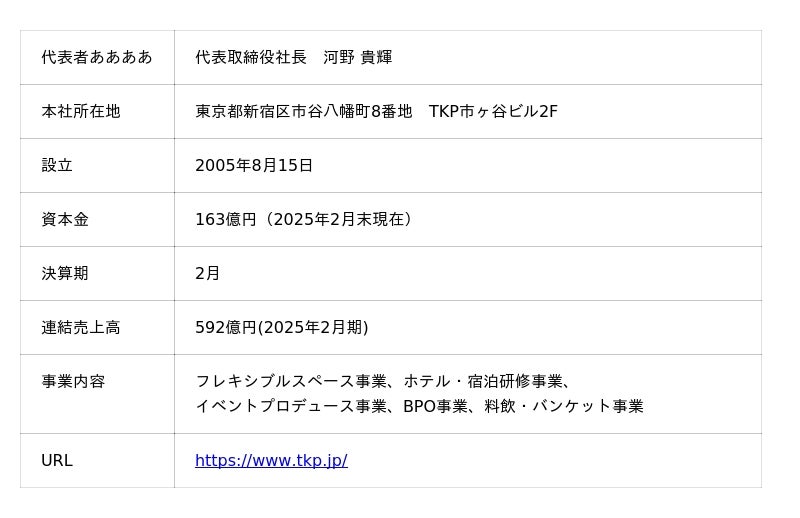 【株式会社ティーケーピー 会社概要】
