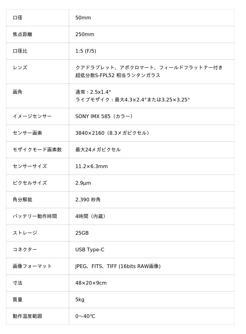 ※三脚カーボン三脚付属、結露防止湿度センサー標準装備