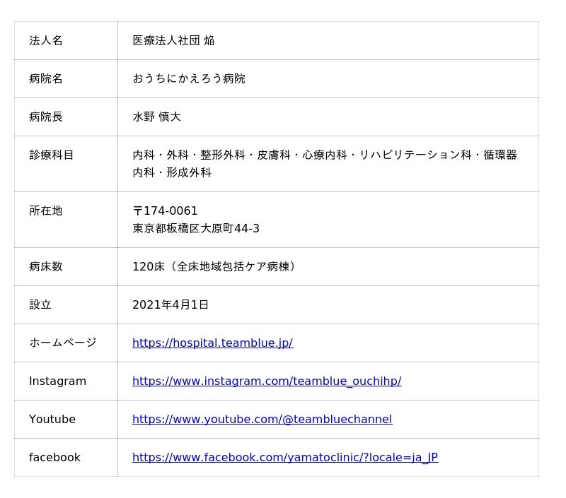 おうちにかえろう病院 公式ホームページ:https://hospital.teamblue.jp/