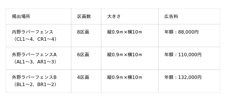本市では、市有財産を有効活用し、市の財源の確保を図るため、ADEKA袖ケ浦球場(袖ケ浦市総合運動場野球場)ラバーフェンスへの広告を募集します。