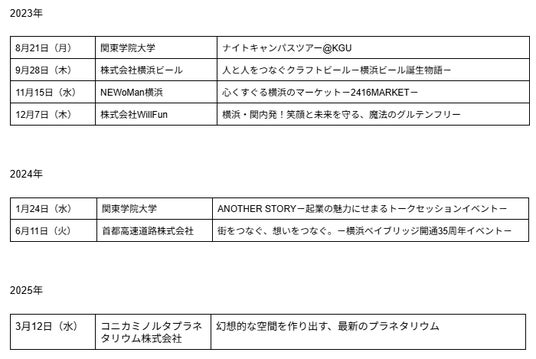 ※ 過去のイベント実績(左から開催日、連携事業者・団体、企画テーマ)