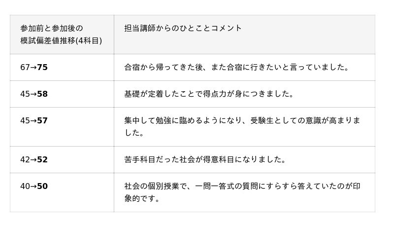 〈合宿に参加して模試の偏差値が上がりました! 〉