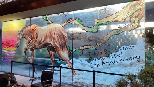 東京ベイ潮見プリンスホテル開業5周年企画として実施した佐藤周作氏によるキットパスウィンドウアート(2025年12月27日制作、制作時間2日間)