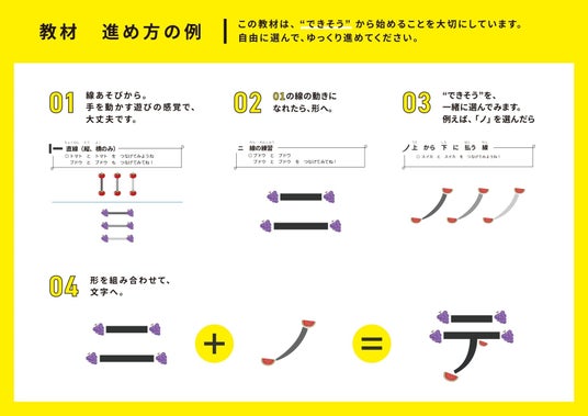 こうした“つまずき”に目を向け、比較的簡単なカタカナから始め、「線→形→文字」という、形を組み合わせいく構造で学べる教材づくりに取り組んできました。開発者自身の、アスペルガー(自閉スペクトラム症/ASD)の子どもに実践し、苦手意識を軽減。「できた!」を増やし、自信を積み重ね、ひらがなへの移行も前向きに取り組むことができました。