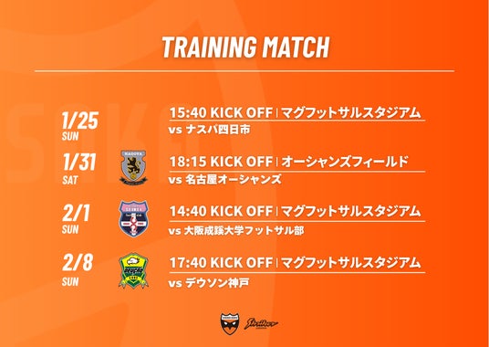 いつもシュライカー大阪を応援いただきありがとうございます。この度、下記日程にてトレーニングマッチの実施が決定しましたのでお知らせいたします。