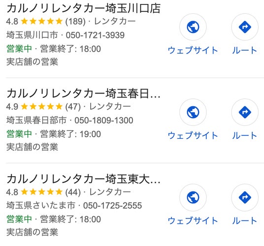 ~オープンから1年半経過したカルノリレンタカー埼玉川口店の累計予約件数が800件を突破!Google口コミ数は190件超!評価は4.8!