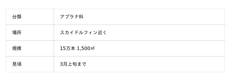 大寒を迎え、福岡にも寒波が押し寄せています。そんな中ですが、海の中道海浜公園(福岡県福岡市東区)では早くも春の訪れを感じさせる菜の花畑が見頃を迎えています。3月上旬まで楽しめる見込みです。一面に黄色が広がり、青空とのコントラストが美しいです。花畑の中に散策路があり、菜の花に包まれながら観賞することもできます。
