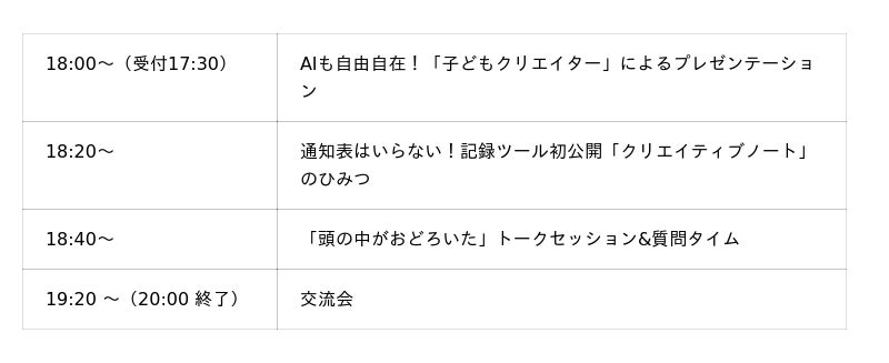今回のアウトプットパーティは、そうした日々の実践をもとに、子どもの創造性をどう観察し、記録し、社会と接続していくのかを大人同士で共有・対話するための時間です。