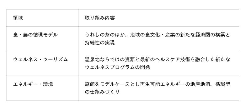 地域資産の再価値化を通じた経済的循環を創出することで、嬉野の多様な価値を次世代へと持続的に継承し、日本を代表する地方創生の先進モデルへと進化させてまいります。