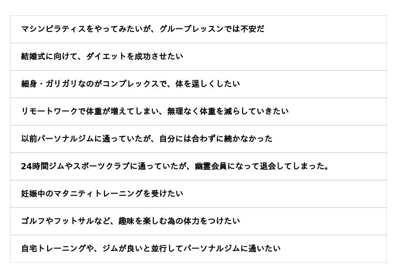 トレーナーの接遇面や、指導スキル、施設に対するご意見までしっかりと聞き取りをさせて頂き