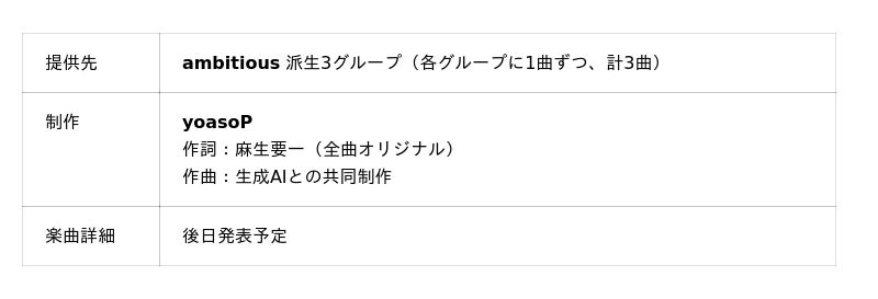 - ambitious 派生3グループへの楽曲提供(本件・2026年)