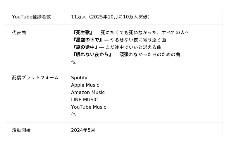 - YouTube登録者11万人のAI音楽プロデューサー、初の商業楽曲提供- メンバーとの深い対話から出発 ―「その人の中にあるもの」を楽曲に昇華