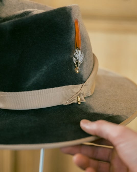 本展は「Magic hour collection」と題して、夕暮れに移ろう空の色彩を、一点一点丹念に染め上げた帽子で表現。本展に寄せてtmh.より、帽子をカスタムできるスタッドピンも登場します。