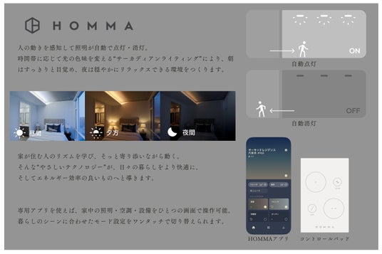 人の動きや生活リズムに合わせて照明や空調を自動制御し、快適性と省エネルギーを両立するHOMMAの仕組みに大きな可能性を感じ、今回のモデルハウスへの導入を決定しました。