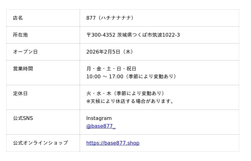 ※商品の一部は、筑波山頂の姉妹店「877Stand」や、オンラインショップでも販売しています。