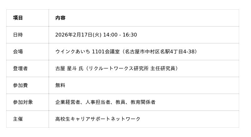 高校生のキャリア形成を支援する「高校生キャリアサポートネットワーク(CSN)」は、2026年2月17日(火)、愛知県名古屋市のウインクあいちにて2025年度総会を開催いたします。
