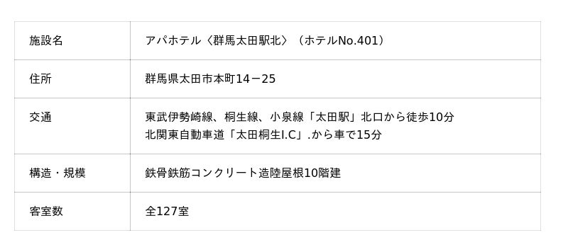 アパホテル〈群馬太田駅北〉HP:https://www.apahotel.com/hotel/syutoken/gunma/gunma-ota-ekikita/