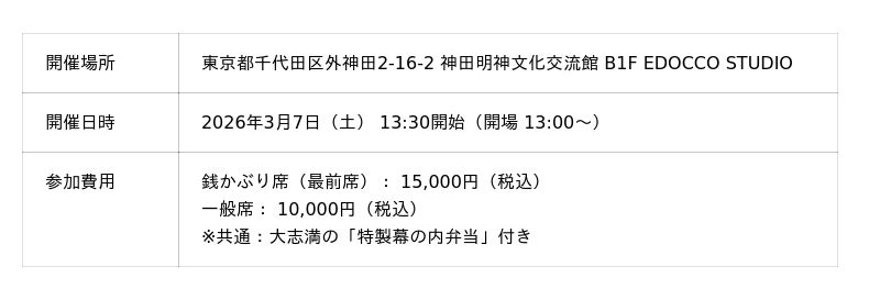 - 参加申込方法:オンラインにてチケット購入 https://edoccostudio-reserve.stores.jp/items/697c0903dc901c35b3739e65
