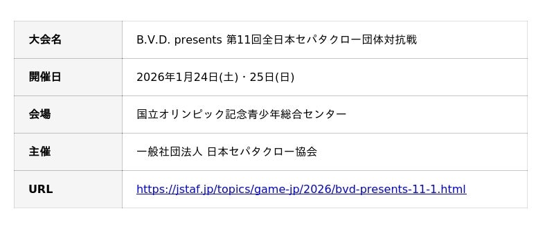 東京都世田谷区若林地区を拠点に活動するセパタクローチーム『A.S.WAKABA』(代表:平瀬 律哉)は、2026年1月24日(土)・25日(日)の2日間にわたり、国立オリンピック記念青少年総合センターで開催された「B.V.D. presents 第11回全日本セパタクロー団体対抗戦」に出場いたしました。
