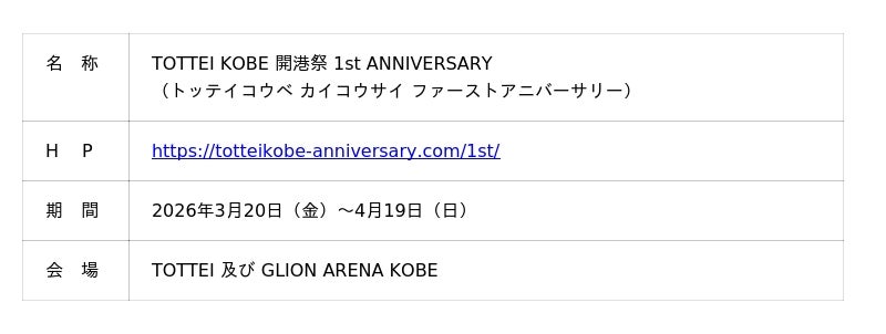 「TOTTEI KOBE 開港祭 1st ANNIVERSARY 」について