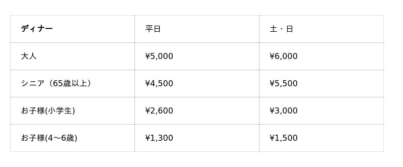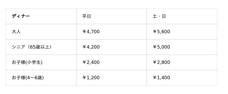 ※料金には消費税及びサービス料が含まれております。