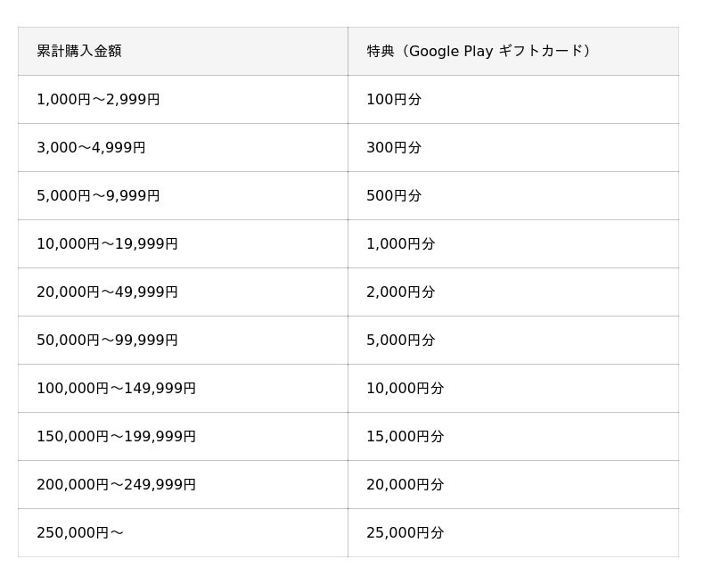 - 購入期間内に店頭でGoogle Play ギフトカードを購入
