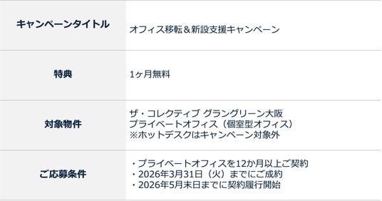 シンガポール発のプレミアムコワーキングブランド JustCo(ジャストコ) が運営する、ラグジュアリーシェアオフィス 「ザ・コレクティブ グラングリーン大阪」 は、1ヶ月無料の「オフィス移転&新設支援キャンペーン」を、本日 2月9日(月) より開始いたします。