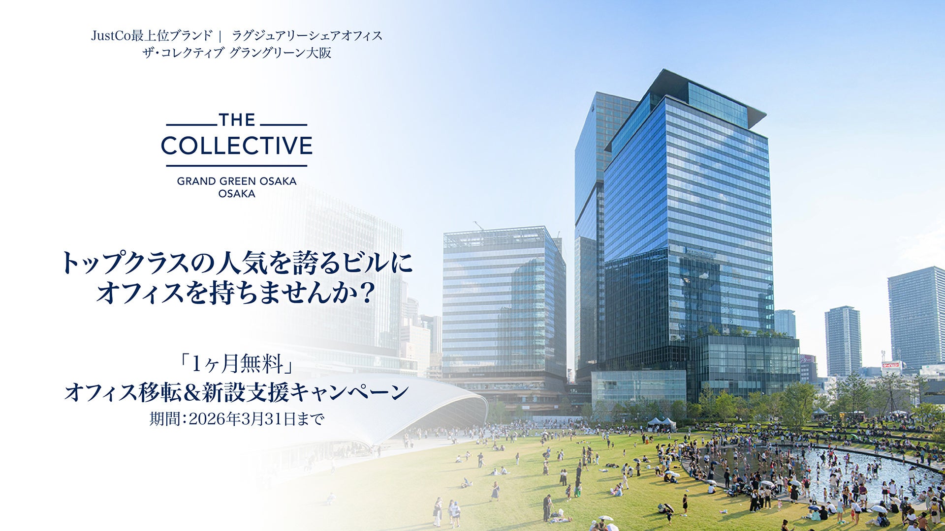 シンガポール発のプレミアムコワーキングブランド JustCo(ジャストコ) が運営する、ラグジュアリーシェアオフィス 「ザ・コレクティブ グラングリーン大阪」 は、1ヶ月無料の「オフィス移転&新設支援キャンペーン」を、本日 2月9日(月) より開始いたします。