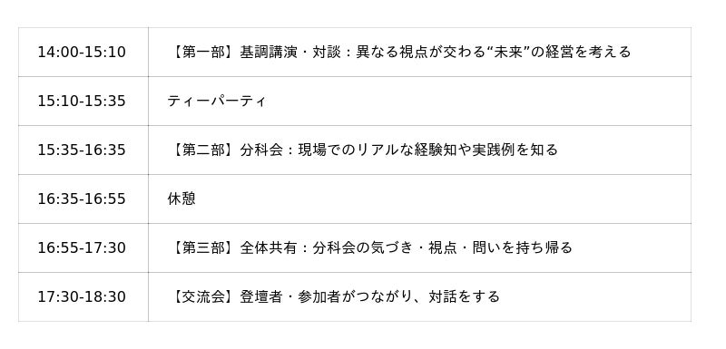 ※一部のみのご参加/途中退出も可能です(参加費の変更はありません)