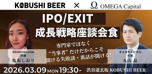 【3月9日(月)19:30~】IPO/EXIT成長戦略座談会!小規模会食/主催:丸山 晶(オメガキャピタル 代表) & 亀坂 しおり(CenternationaL)