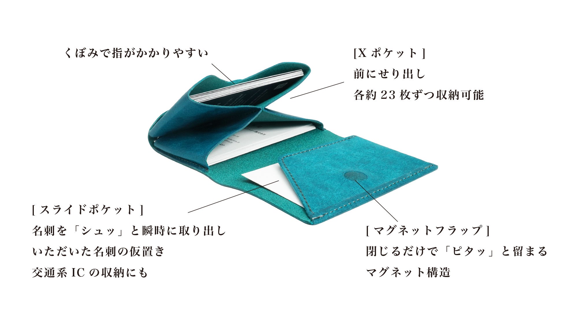 名刺が前にせり出し、見やすく取り出しやすい。出すときにモタモタしない、美しい所作。
