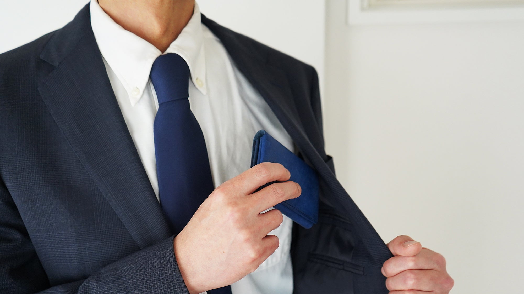 ジャケットの内ポケットにも自然に収まり、シルエットを崩さないスマート設計。