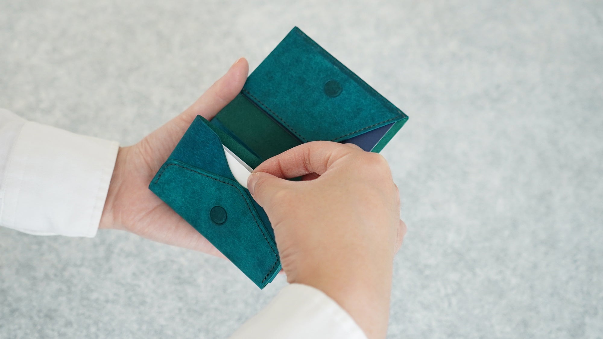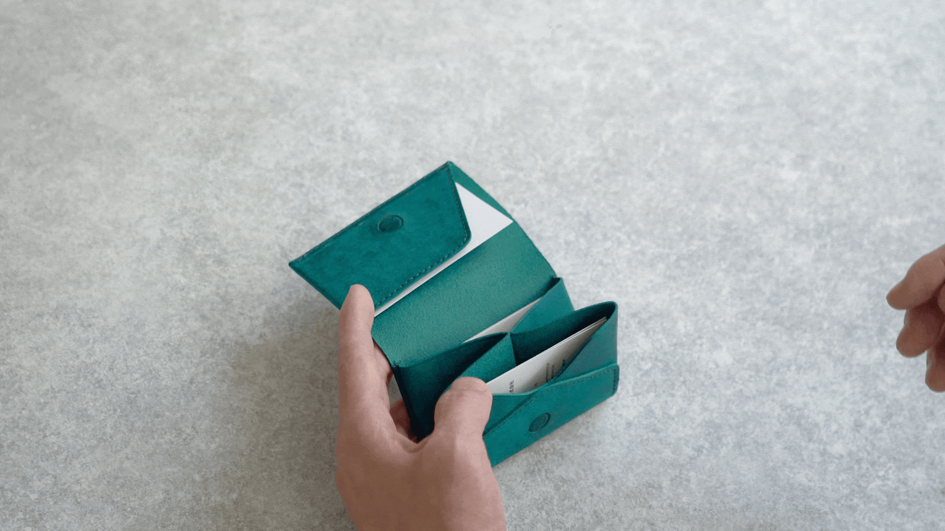 名刺入れとしてはもちろん、カードケースとしても活躍。クレジットカードや交通系ICカードに加え、少し大きめのポイントカードなどにも対応します。用途が変わっても、所作の美しさはそのままに。