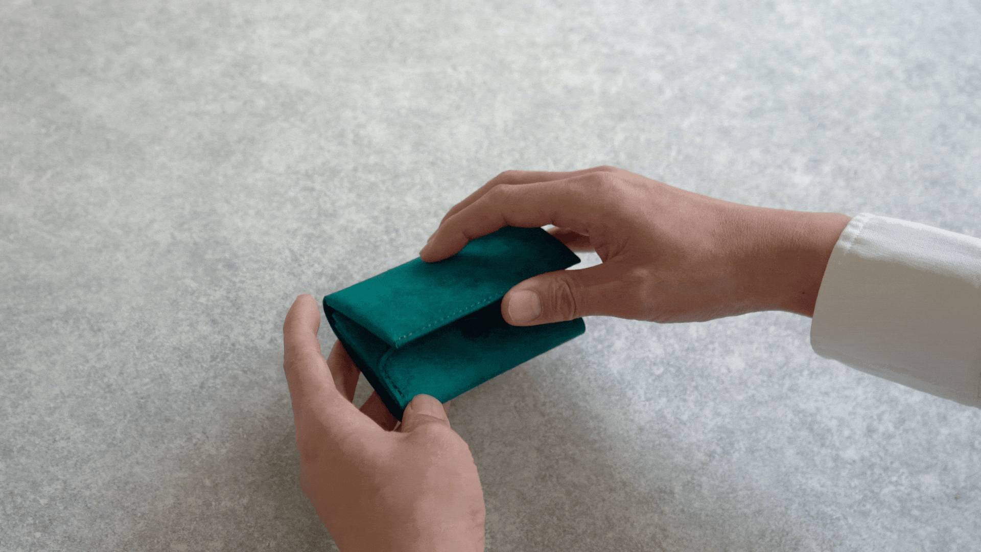 名刺入れを開かず、名刺を瞬時に差し出せるスライドポケット。迷いのない動きが、スマートな印象を残します。